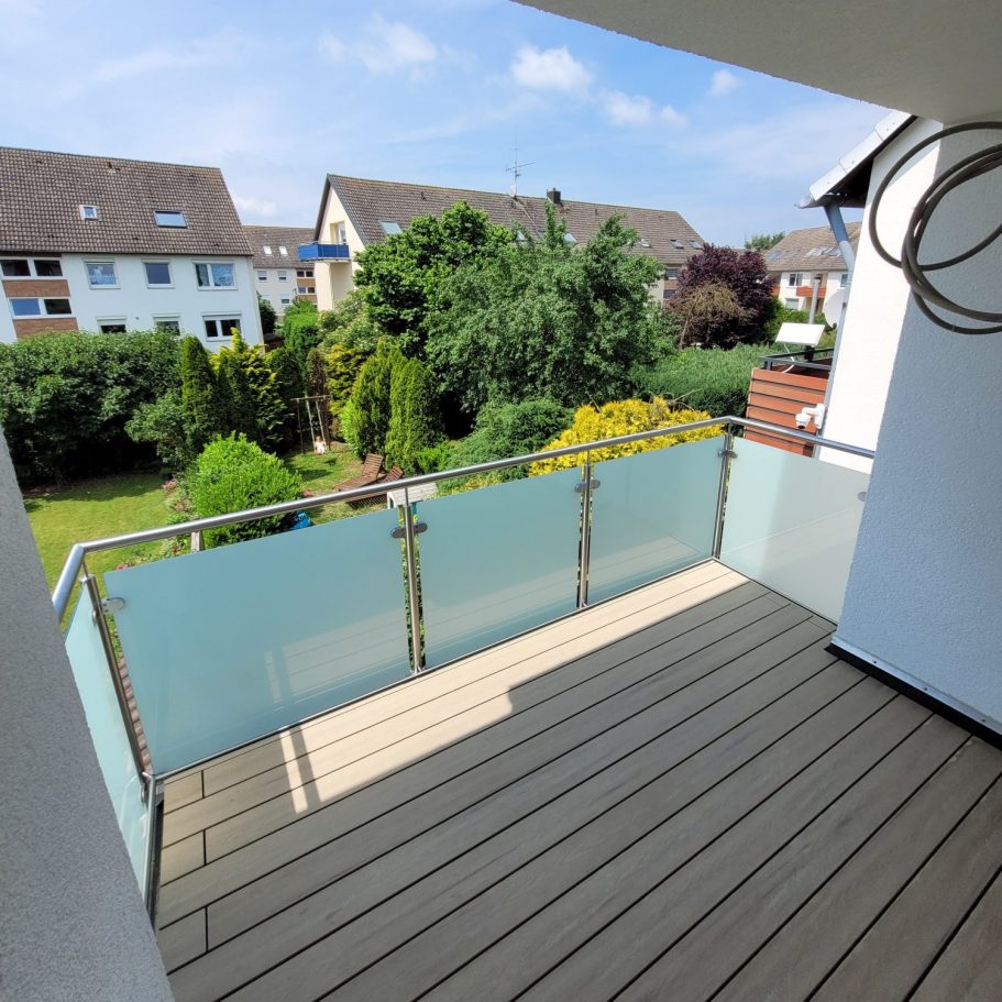 Glasgeländer sind mit ihrer schlichten und hellen Art immer in Mode.
